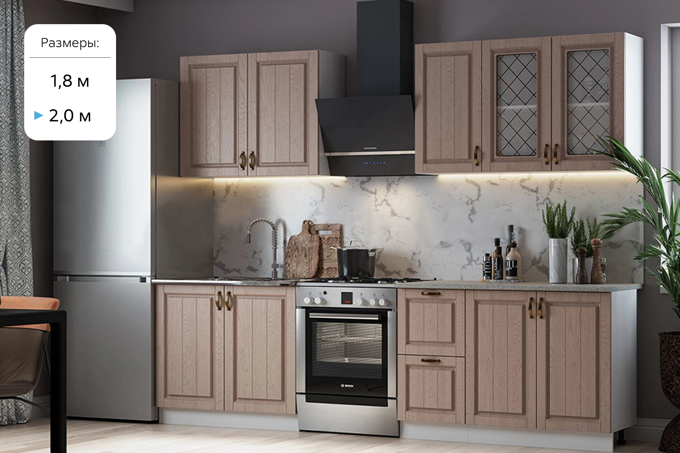 В комплект входит Верх (ШхВхГ):, , ШВ 600 - 60 х 71.8 х 30 см - 1 шт., ШВ 400 - 40 х 71.8 х 30 см - 1 шт., ШВС 800 - 80 х 71.8 х 30 см - 1 шт., , Низ (ШхВхГ):, , ШНМ 600 - 60 х 82 х 50.6 см - 1 шт., ШН2ЯГ 400 - 40 х 84.6 х 50.6 см - 1 шт., ШН 800 - 80 х 84.6 х 50.6 см - 1 шт., , , Столешница 80 см - 1 шт., Столешница 40 см - 1 шт.