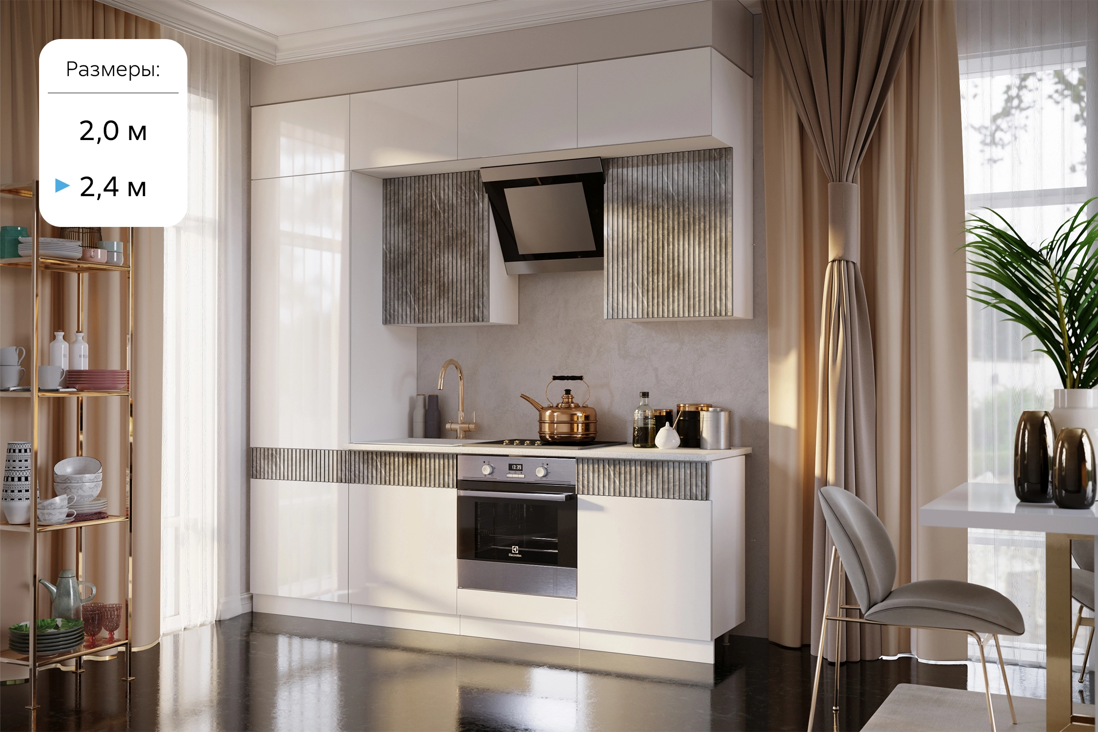 Кухня Оливия NEW 2,4м (490) (Белый глянец холодный/Мрамор глянец, Белый (Антарес))