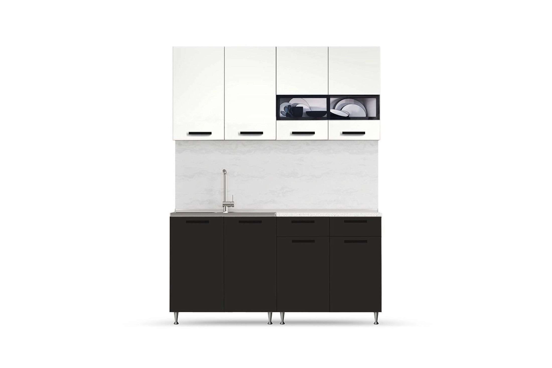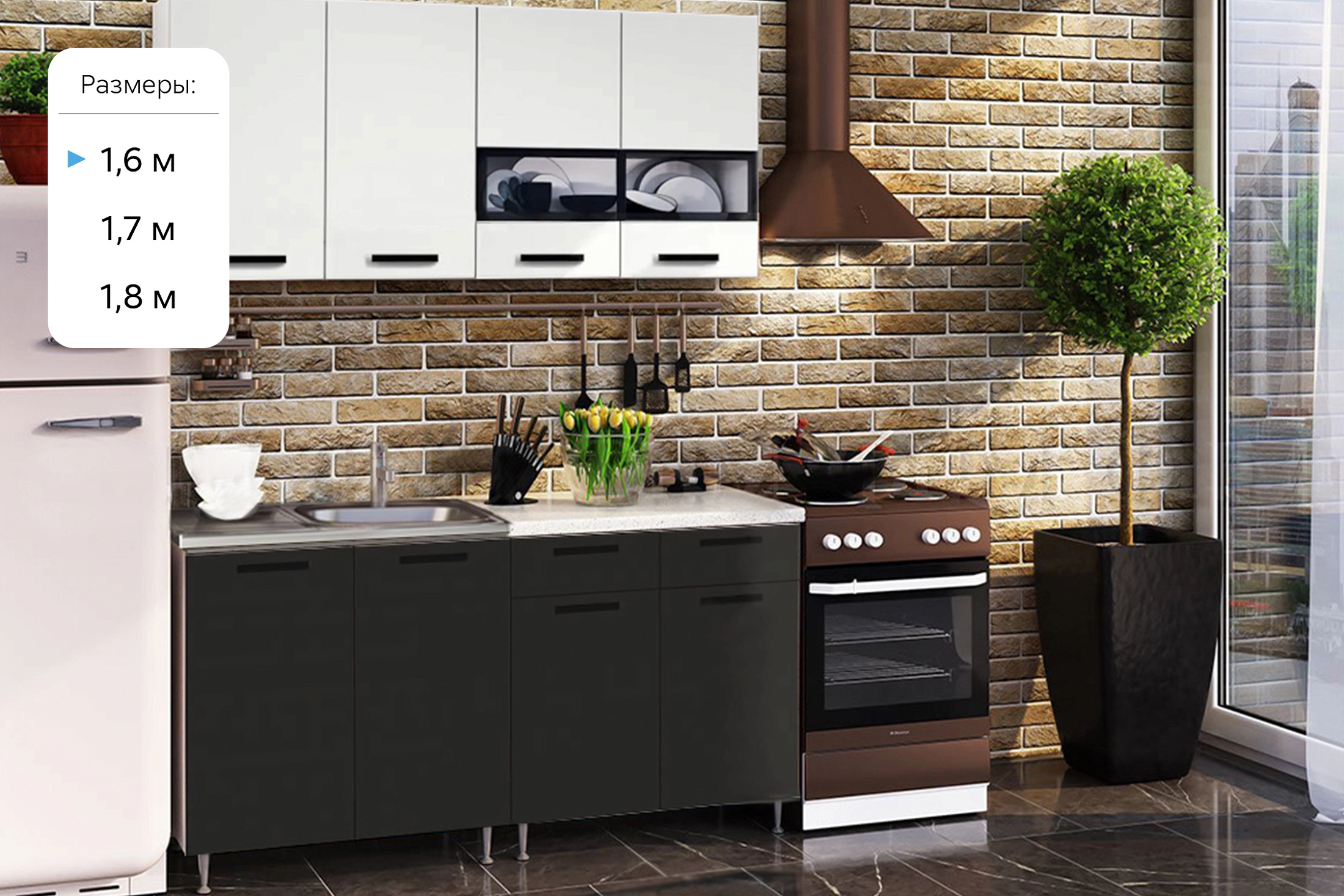 Кухня Рио 1,6м (490) (Белый глянец/Черный глянец, Белый (Антарес))
