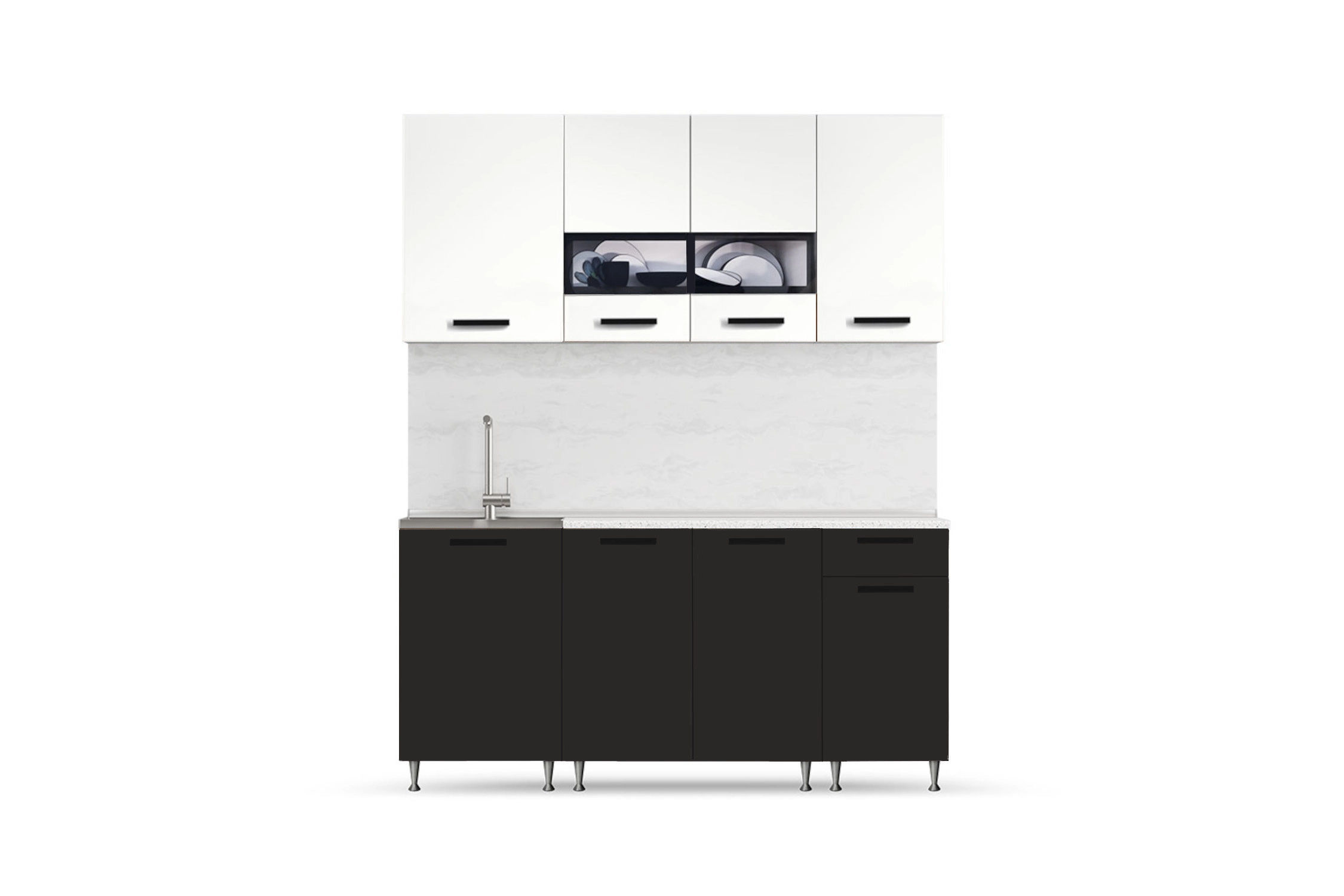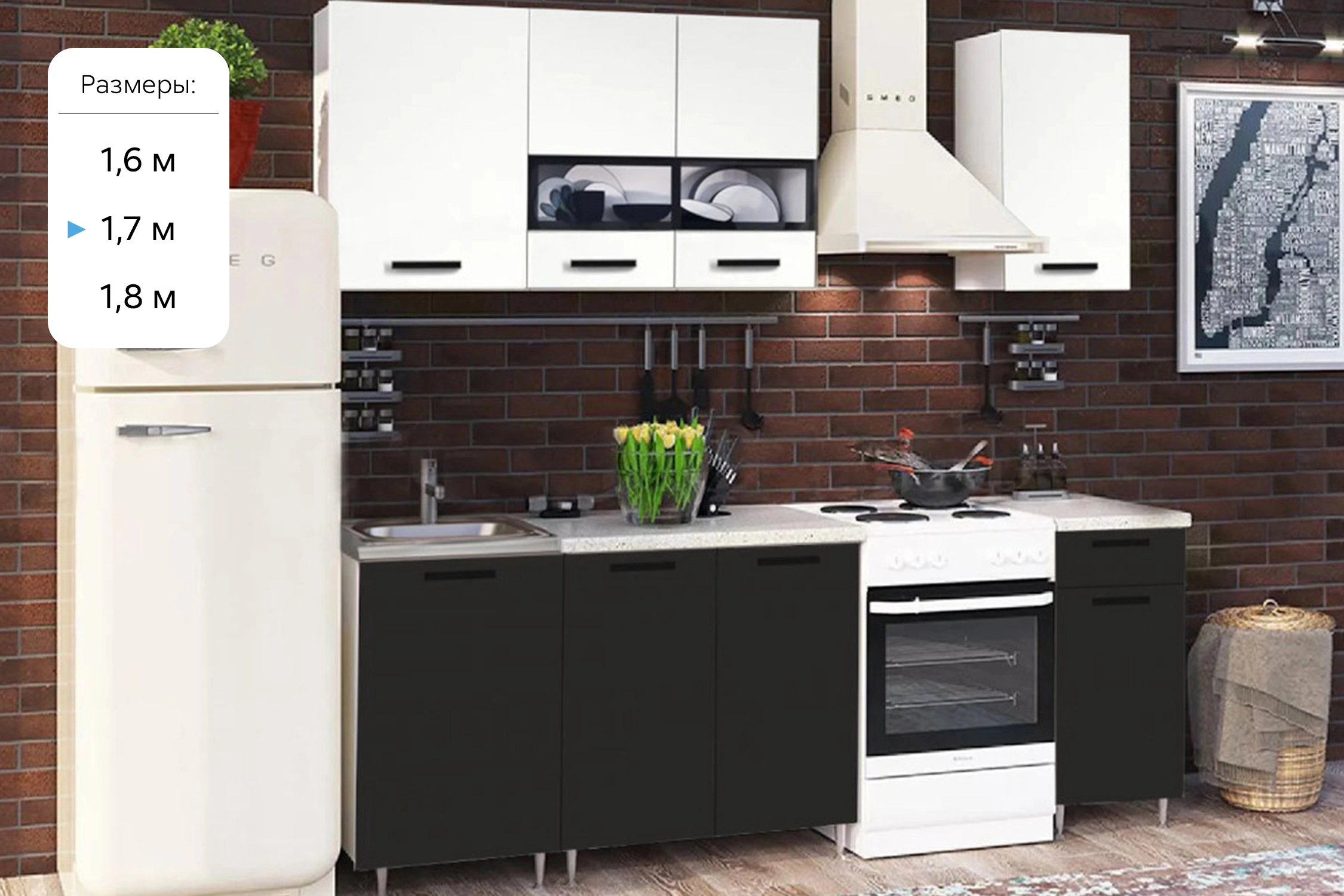 Кухня Рио 1,7м (490) (Белый глянец/Черный глянец, Белый (Антарес))