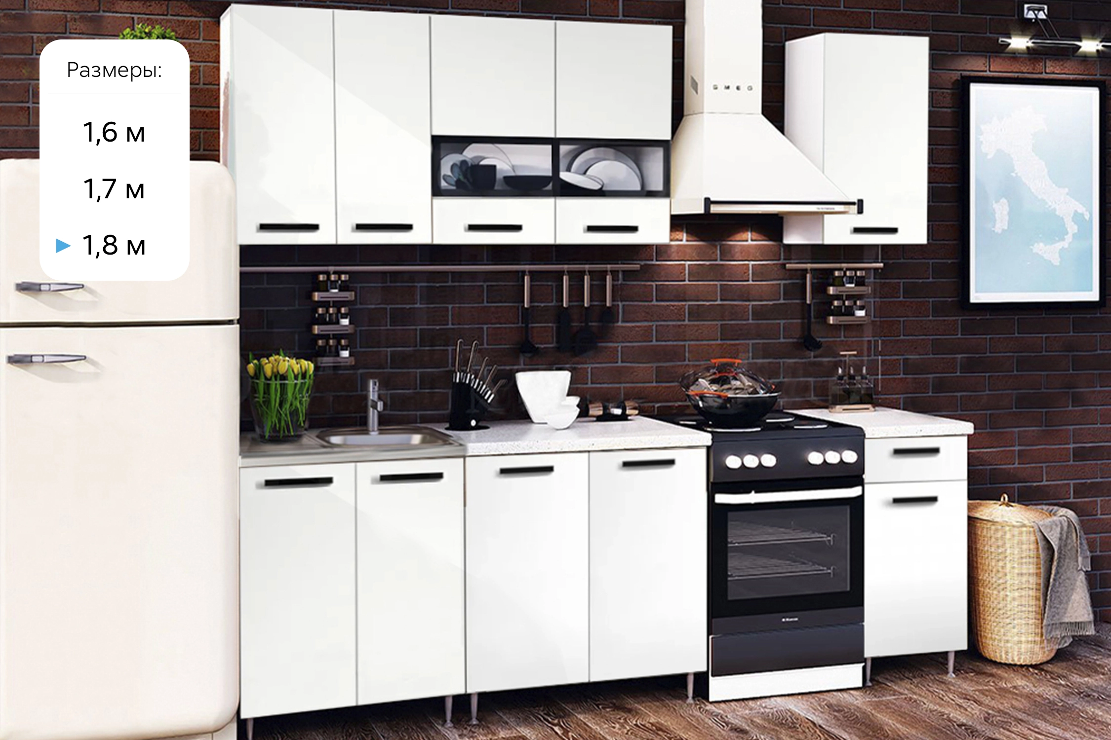 Кухня Рио 1,8м (490) (Белый глянец, Белый (Антарес))