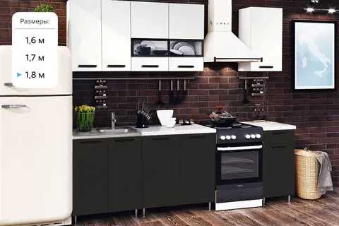 Кухня Рио 1,8м (490) (Белый глянец/Черный глянец, Белый (Антарес))