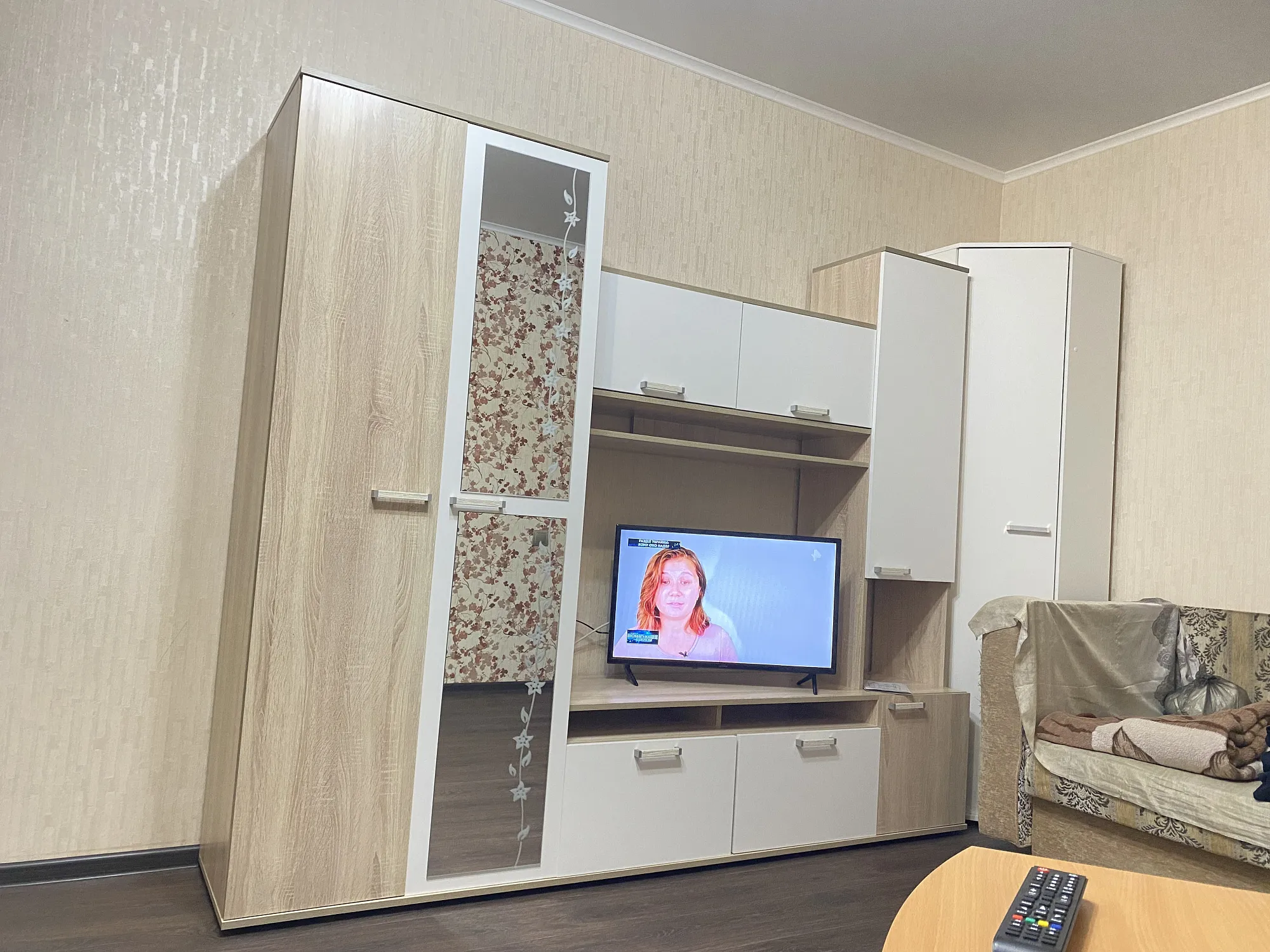 Ниша под ТВ (ширина 109.8 см, высота 71.2 см) предназначена для удобного размещения телевизора и аксессуаров. Ваши игровые консоли или музыкальные системы легко разместятся, а кабели можно аккуратно убрать за фасады, сохранив эстетичный вид пространства.