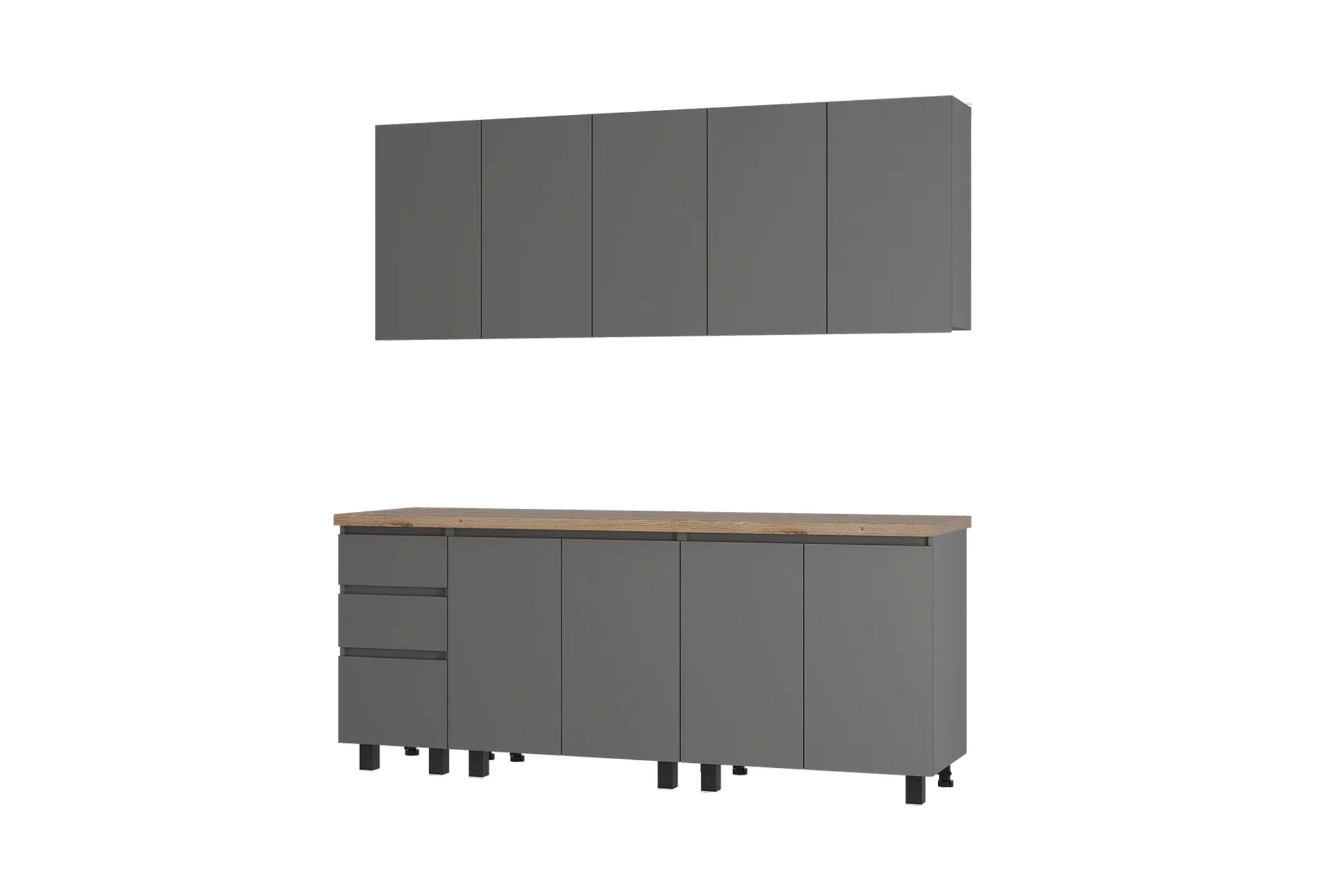 | В комплект входит | Верх (ШхГхВ):, Шкаф настенный 40 х 30.4 х 72 см - 1 шт., Шкаф настенный 80 х 30.4 х 72 см - 2 шт., , Низ (ШхГхВ):, Шкаф напольный с ящиками 40 х 50 х 85.8 см - 1 шт., Шкаф под мойку 80 х 50 х 85.8 см - 1 шт., Шкаф напольный 80 х 50 х 85.8 см - 1 шт., , Столешница 200 см - 1 шт. |