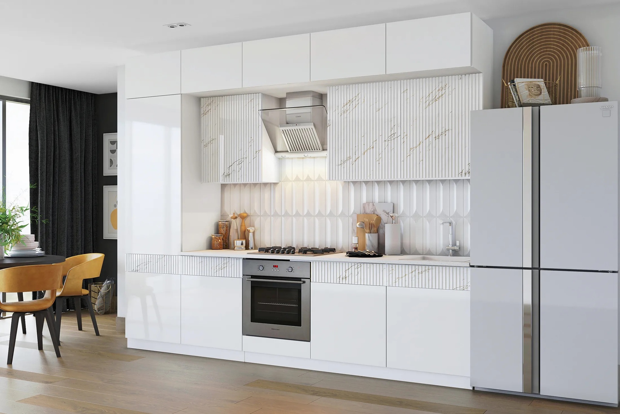 | Цвет фасада | Белый глянец холодный / Мрамор золото |