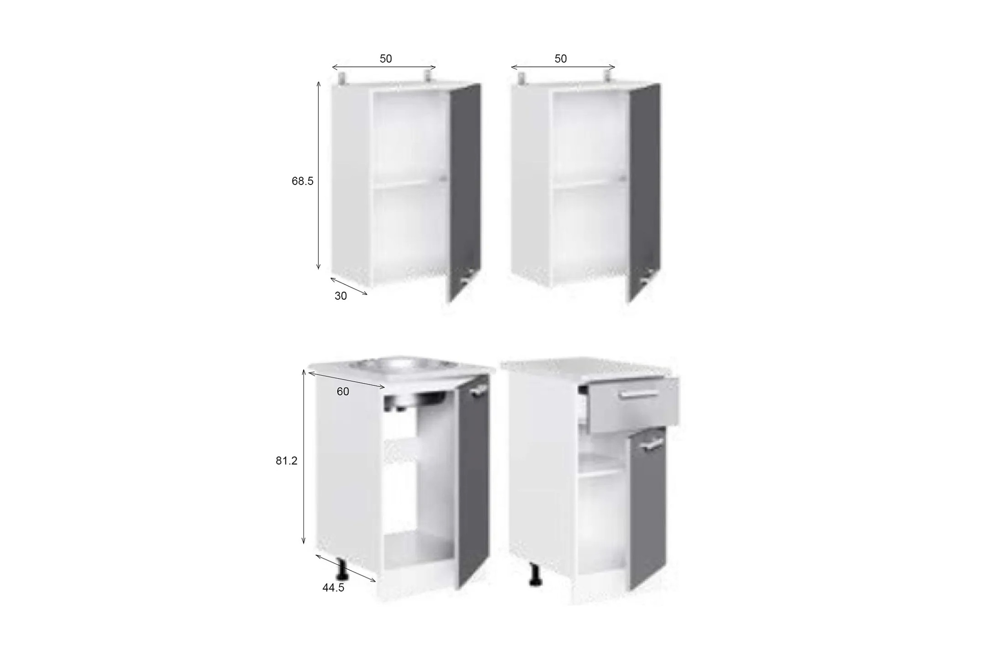 | Дополнительно | Цоколь не входит в комплект., Глубина верхних и нижних шкафов указана с учетом толщины фасада., Высота нижних шкафов указана с учетом столешницы. |