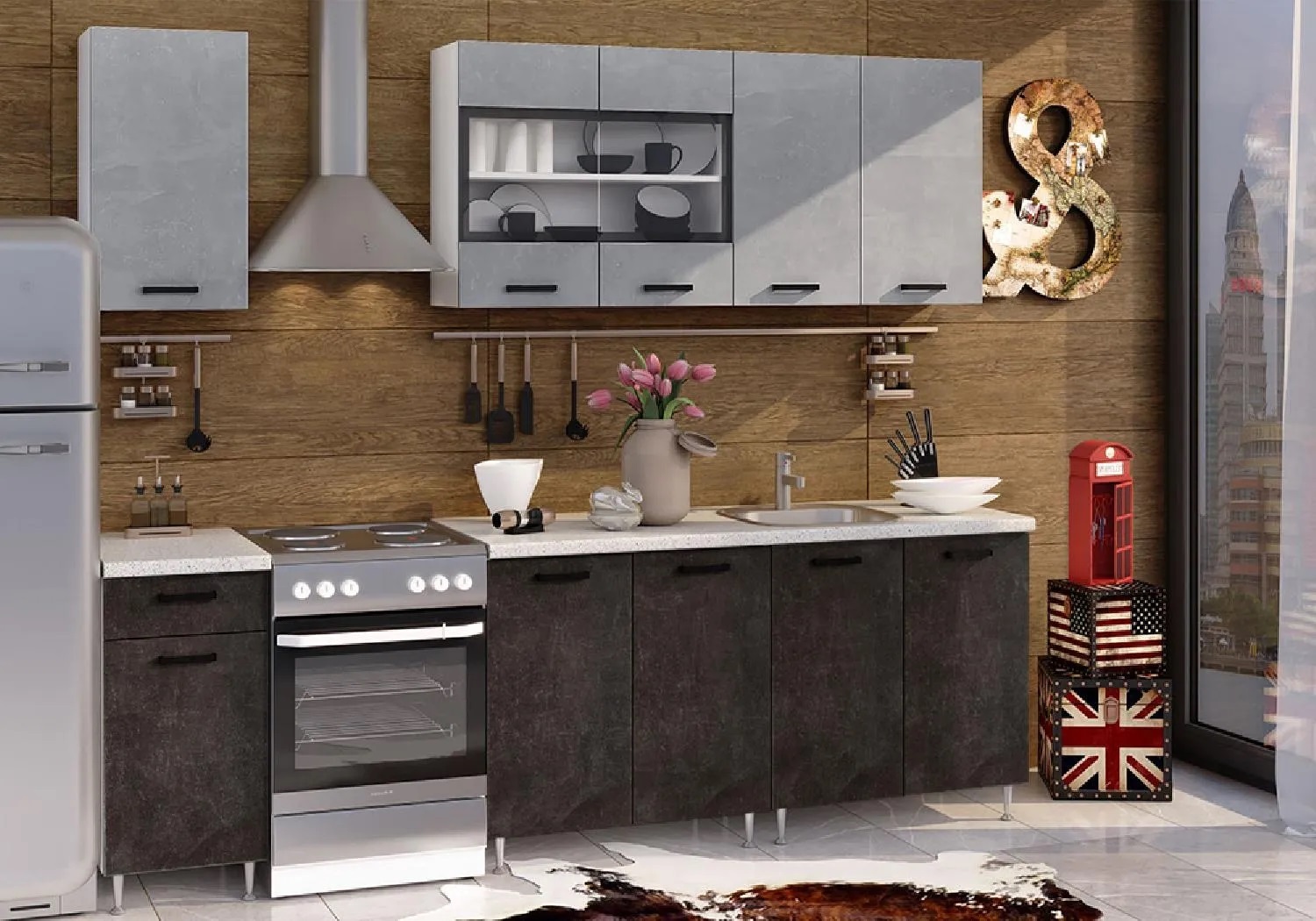 | Дополнительно | Цоколь не входит в комплект., Глубина верхних и нижних шкафов указана с учетом толщины фасада., Высота нижних шкафов указана с учетом столешницы. |