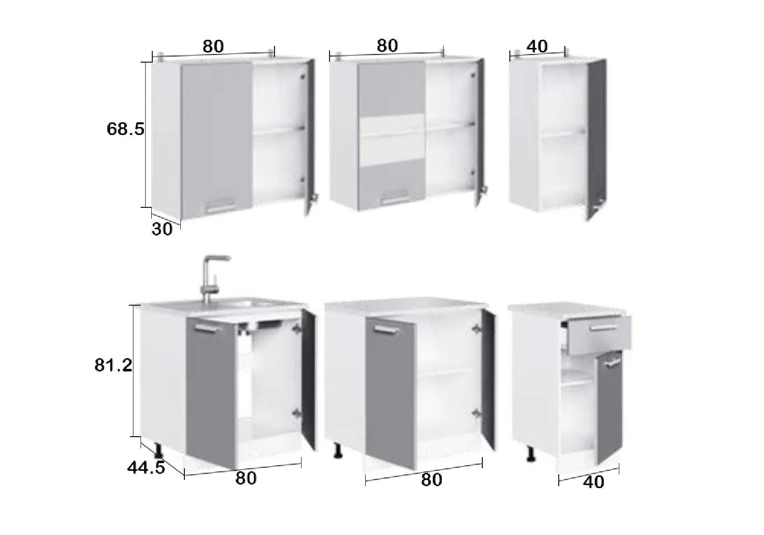 | Высота нижних шкафов, см | 81.2 |