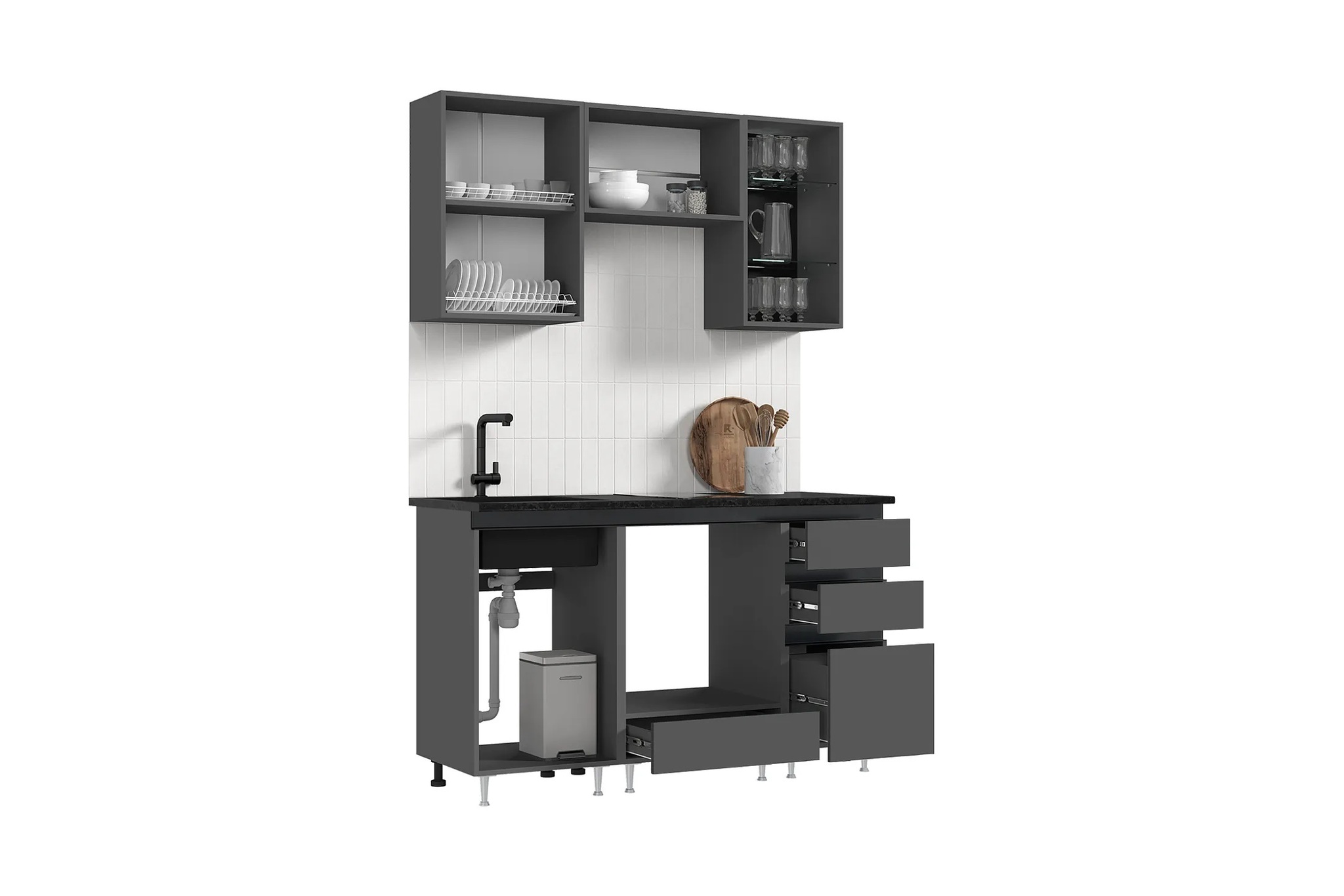 | В комплект входит | Верхние модули (ШхВхГ):, , ШВ 500 - 50 х 71.8 х 30 см - 1 шт., ШВГ 600/360 - 60 х 35.9 х 30 см - 1 шт., ШВС 400 - 40 х 71.8 х 30 см - 1 шт., , Нижние модули (ШхВхГ):, , ШНМ 500 - 50 х 93.2 х 50.6 см - 1 шт., ШНВТ 600 - 60 х 93.2 х 50.6 см - 1 шт., ШН3Я 400 - 40 х 93.2 х 50.6 см - 1 шт., , Столешница 150 см - 1 шт. |