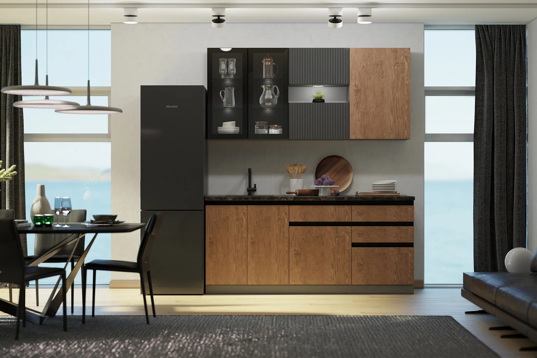 | Дополнительно | Высота нижних модулей указана с учетом толщины столешницы., Глубина модулей указана с учетом фасада., Цоколь в комплект не входит., Подсветка в комплект не входит., Материал опор: пластик., Указан цвет опор спереди., Цвет опор сзади: черный. |