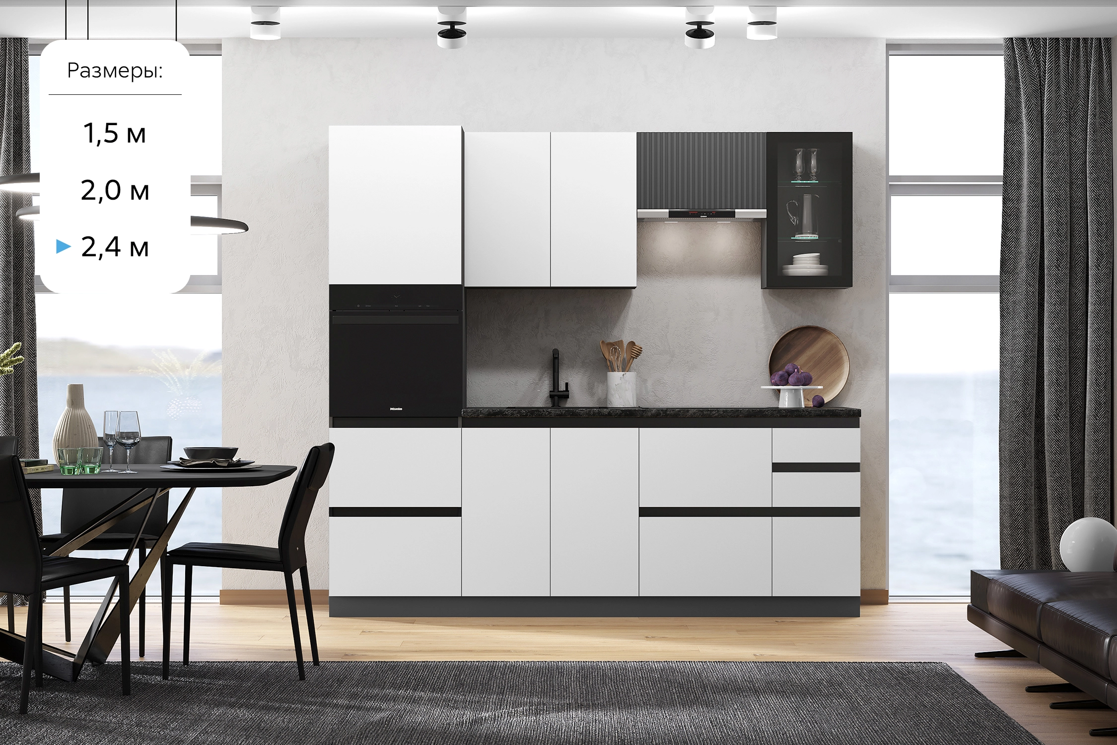 Кухня Техно-6 2,4м (Графит/Белый снег софт/Графит софт NEW)