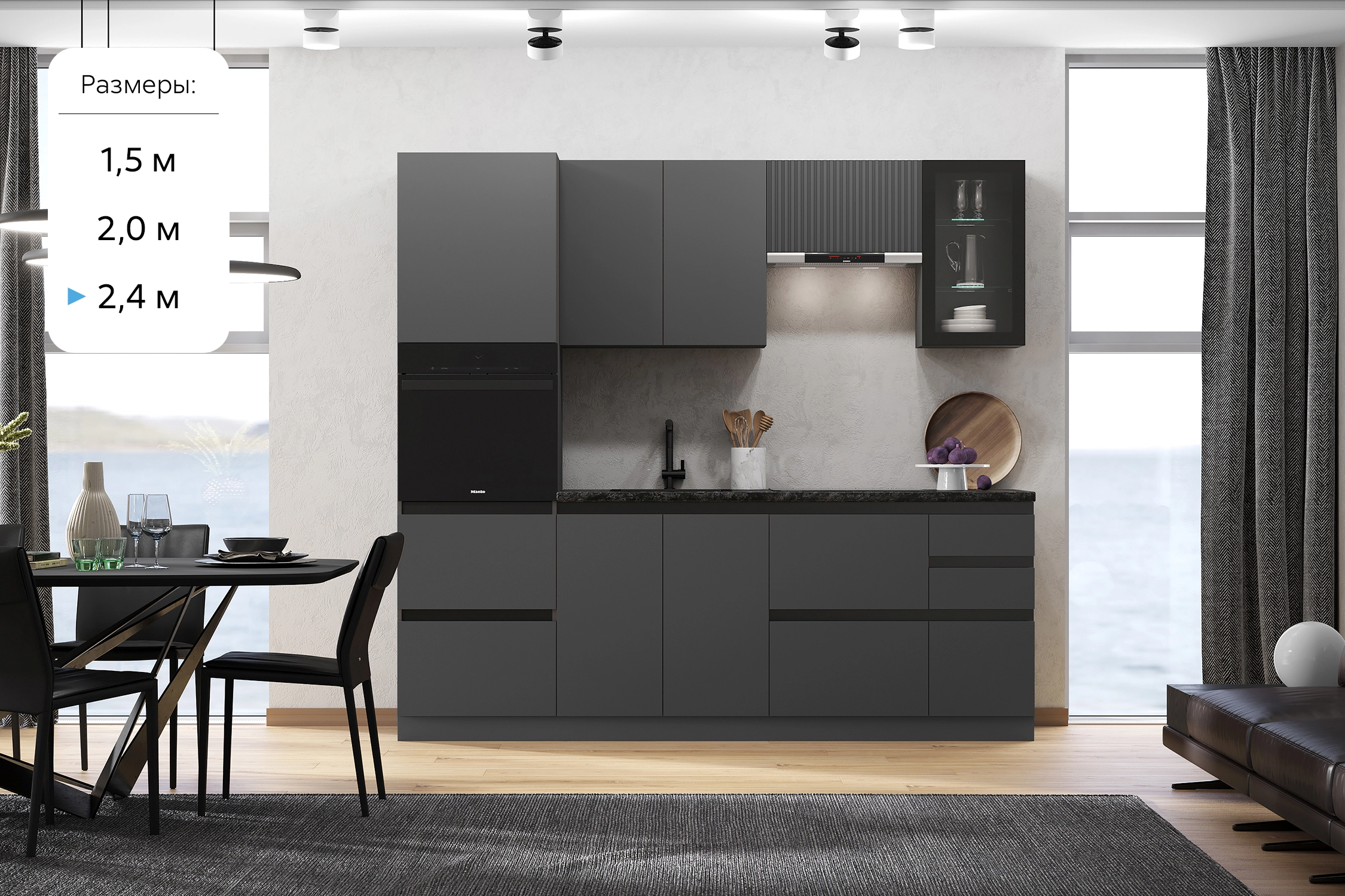 Кухня Техно-6 2,4м (Графит/Графит софт NEW)