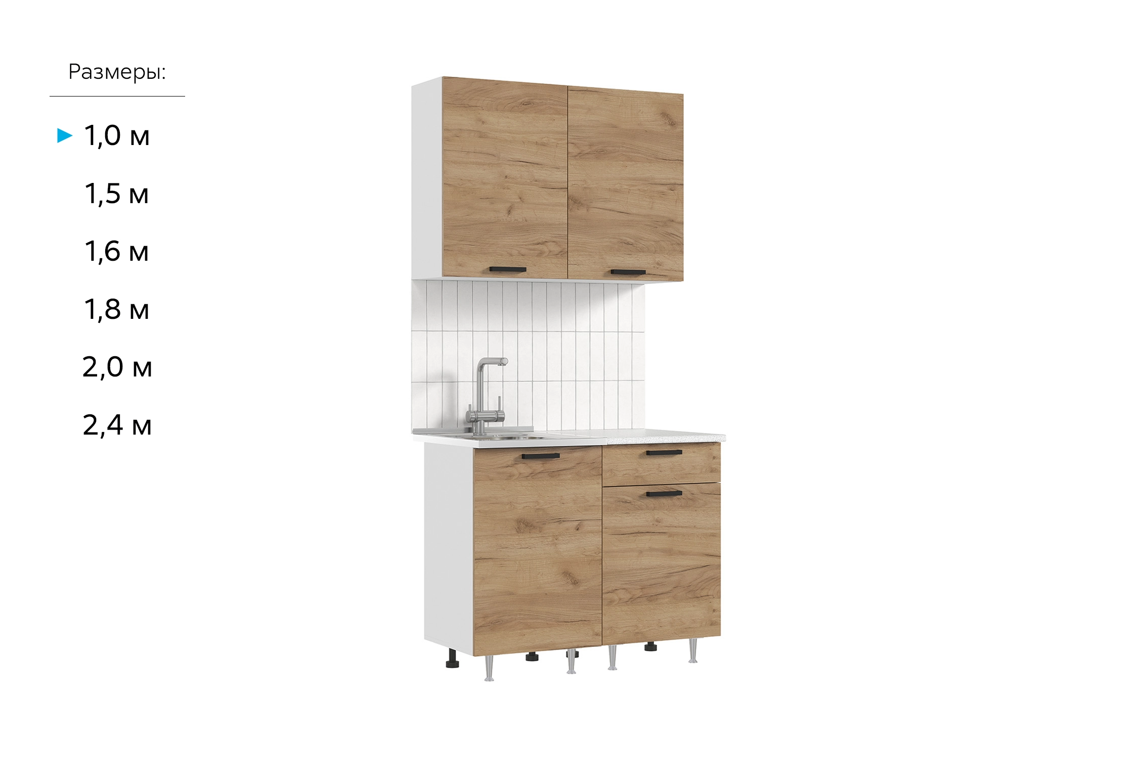 Верхние модули (ШхВхГ):, , ШВ 600 - 60х71.8х30 см - 1 шт., ШВС 800 - 80х71.8х30 см - 1 шт., ШВ 400 - 40х71.8х30 см - 1 шт., , Нижние модули (ШхВхГ):, , ШНМ 600 - 60х85х50.6 см - 1 шт., ШН 800 - 80х85х50.6 см - 1 шт., ШН1Я 400 - 40х85х50.6 см - 1 шт., , Столешница 80 см - 1 шт., Столешница 40 см - 1 шт.