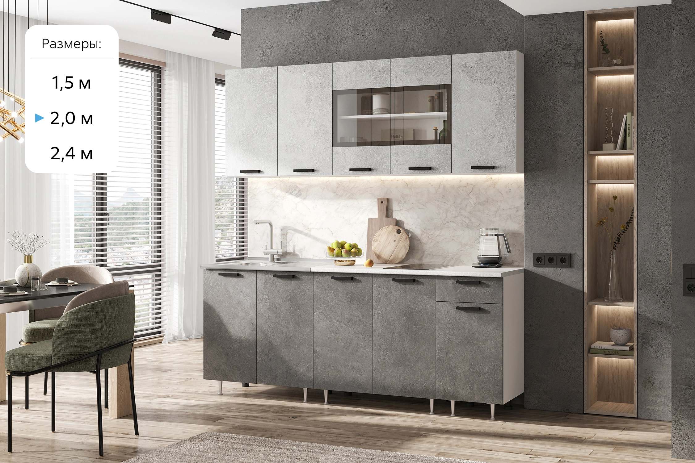 ЛДСП Кухня Рио NEW 2,0м (490) (Бетон светлый/Бетон темный, Белый (Антарес))