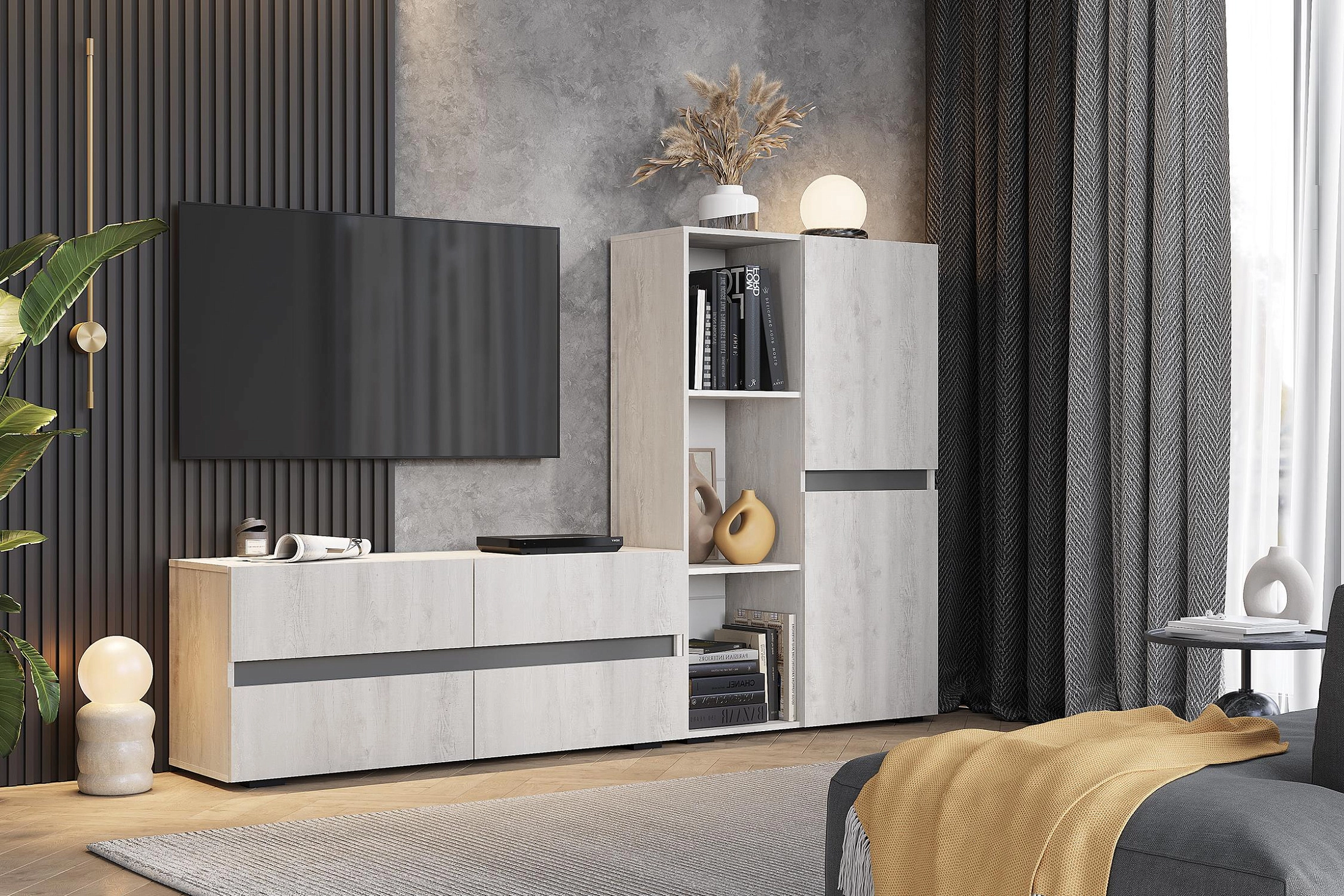 Гостиная Мрия 1 бетон пайн светлый / графит