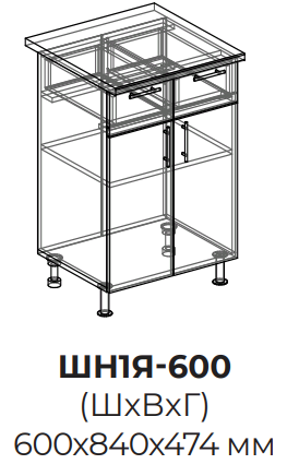 Размер без столешницы: (ШхВхГ) 600х814х474 мм