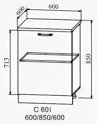 Шкаф нижний 850*600 - модуль шириной 60 см с одной дверцей.