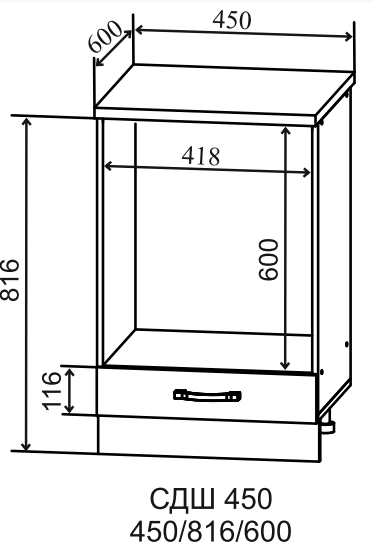 Шкаф нижний духовой 450 - модуль шириной 45 см, предназначенный для установки духового шкафа и варочной панели.