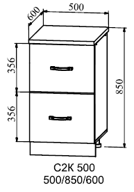Шкаф нижний комод (2 ящика) 850*500 - модуль шириной 50 см с двумя глубокими и вместительными выдвижными ящиками на шариковых направляющих полного выдвижения.