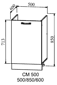 Шкаф нижний мойка 850*500 - модуль шириной 50 см для размещения накладной мойки.