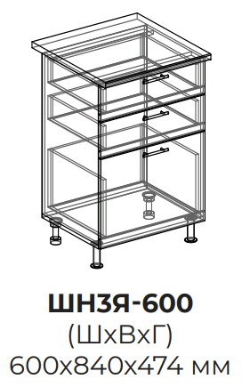 Кухня Техно шкаф нижний (3 ящика) 600