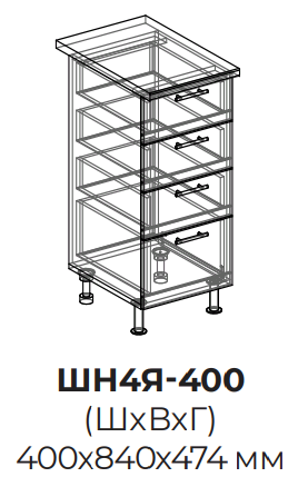 Размер без столешницы: (ШхВхГ) 400х814х474 мм