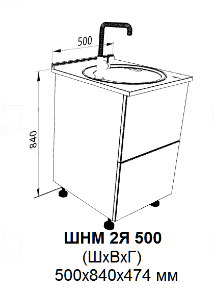 Размер со столешницей 26 мм: (ШхВхГ) 500х840х600 мм