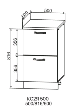 Шкаф нижний 2 ящика 850*500 - модуль шириной 50 см с двумя глубокими и вместительными выдвижными ящиками на направляющих скрытого монтажа с доводчиком. Дно ящика - ЛДСП.