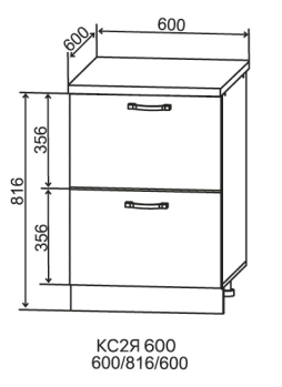 Шкаф нижний 2 ящика 850*600 - модуль шириной 60 см с двумя глубокими и вместительными выдвижными ящиками на направляющих скрытого монтажа с доводчиком. Дно ящика - ЛДСП.