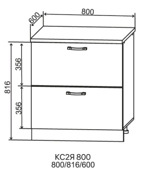 Шкаф нижний 2 ящика 850*800 - модуль шириной 80 см с двумя глубокими и вместительными выдвижными ящиками на направляющих скрытого монтажа с доводчиком. Дно ящика - ЛДСП.