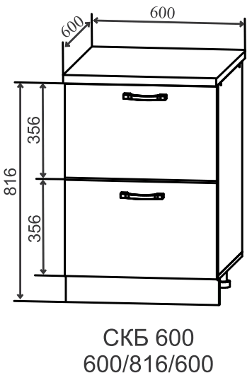 Шкаф нижний с тандембоксами (2 ящика) 850*600 - модуль шириной 60 см с двумя глубокими и вместительными выдвижными ящиками .