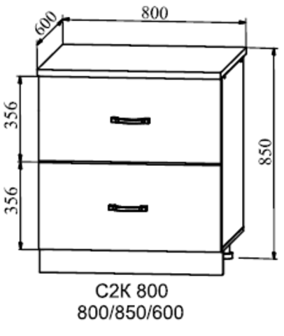 Кухня Альберо шкаф нижний комод (2 ящика) 850*600