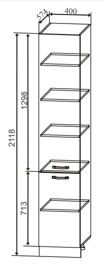Пенал 400 - вместительная модель шириной 40 см, которая гармонично завершит композицию из верхних и нижних шкафов.