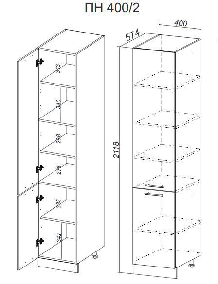 Кухонный модуль ПН 400/2 - пенал, разделенный на две части фасадами. В верхней части
