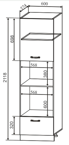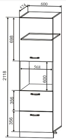 Кухня Манго пенал 600 с ящиками с нишей для техники