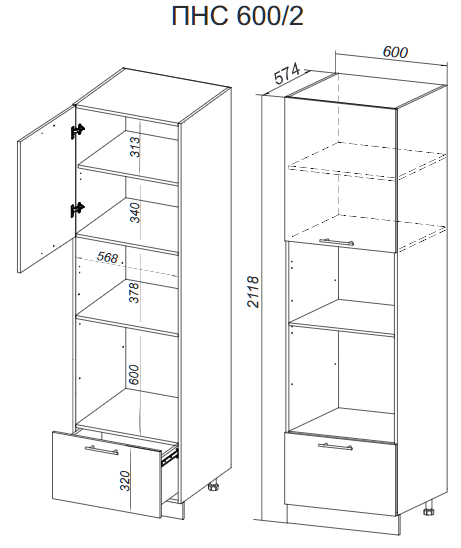 В ПНС 600/2 горизонтальные полки (вязки) монтируются с помощью эксцентрика MINIFIX для плит толщиной 16 мм , вместо дна - вязка усиленная