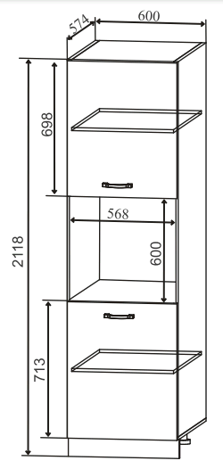 Размеры (ШхВхГ): 600х2118х574 мм
