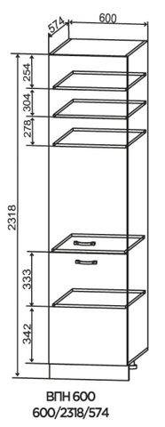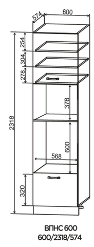 Кухня Альберо пенал высокий 600 с ящиками с нишей для техники