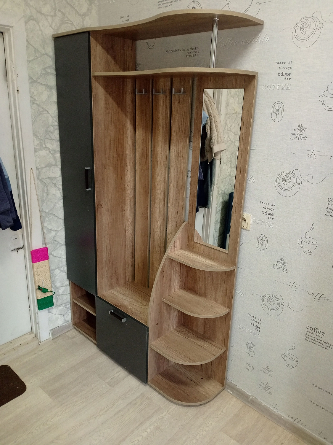 Полки помогают эффективно организовать хранение обуви, сумок и аксессуаров. Универсальная сборка даёт возможность адаптировать прихожую под свои нужды, изменяя порядок полок при необходимости. Хотя нет штанги для белья, крючки и вешалки позволяют удобно разместить одежду.