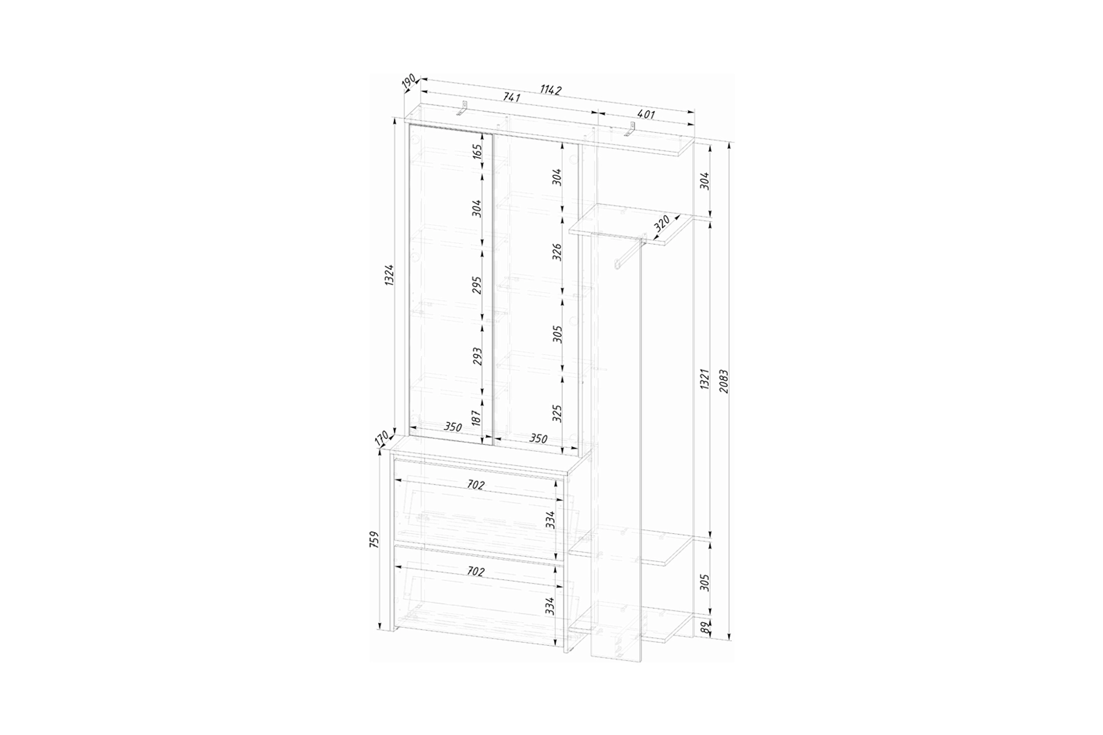 | Материал фасадов | Зеркало / ЛДСП 16 мм |