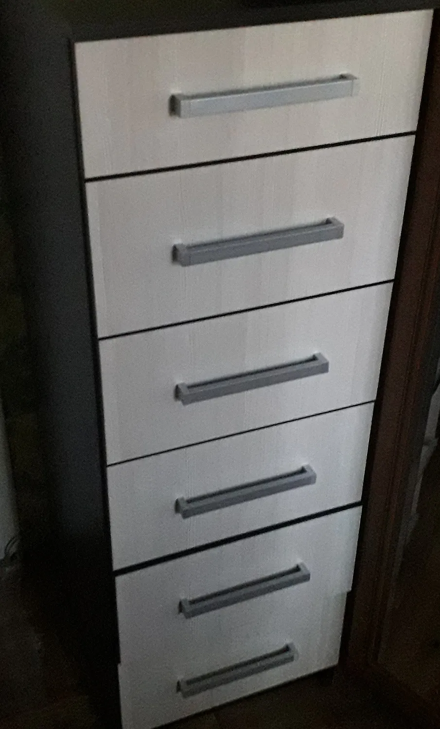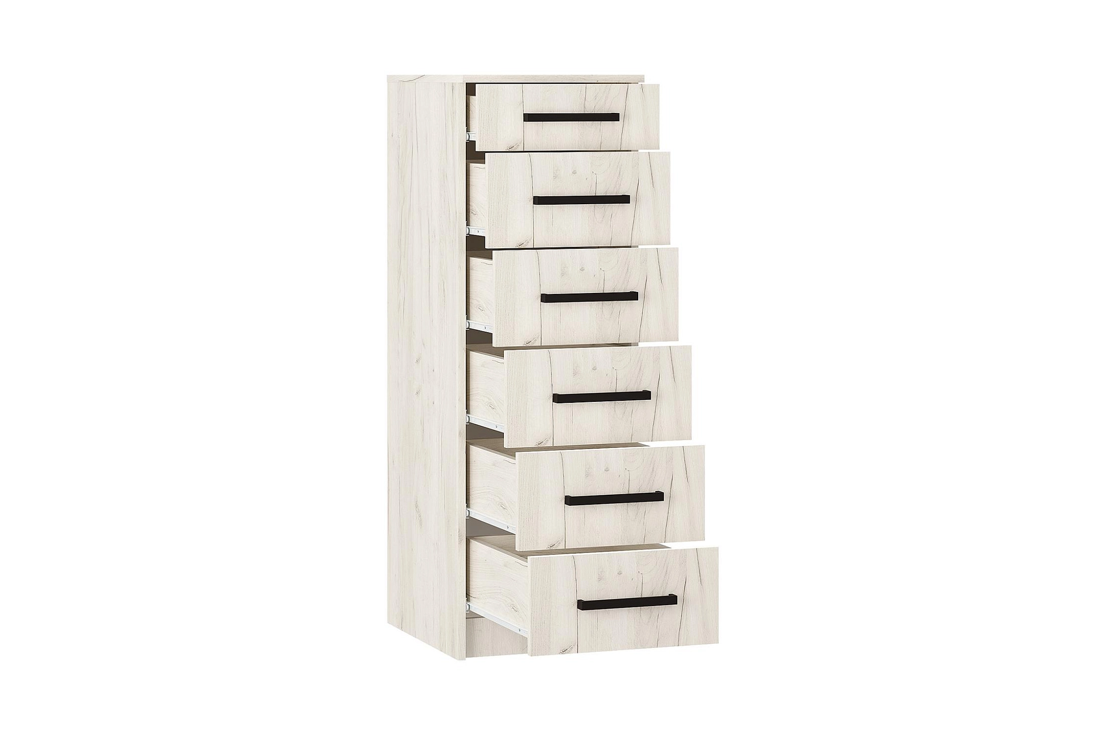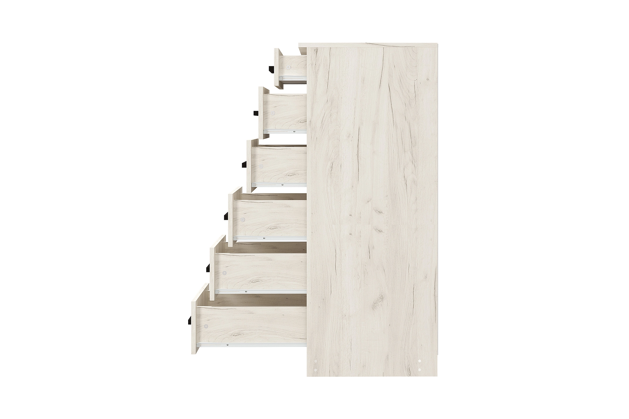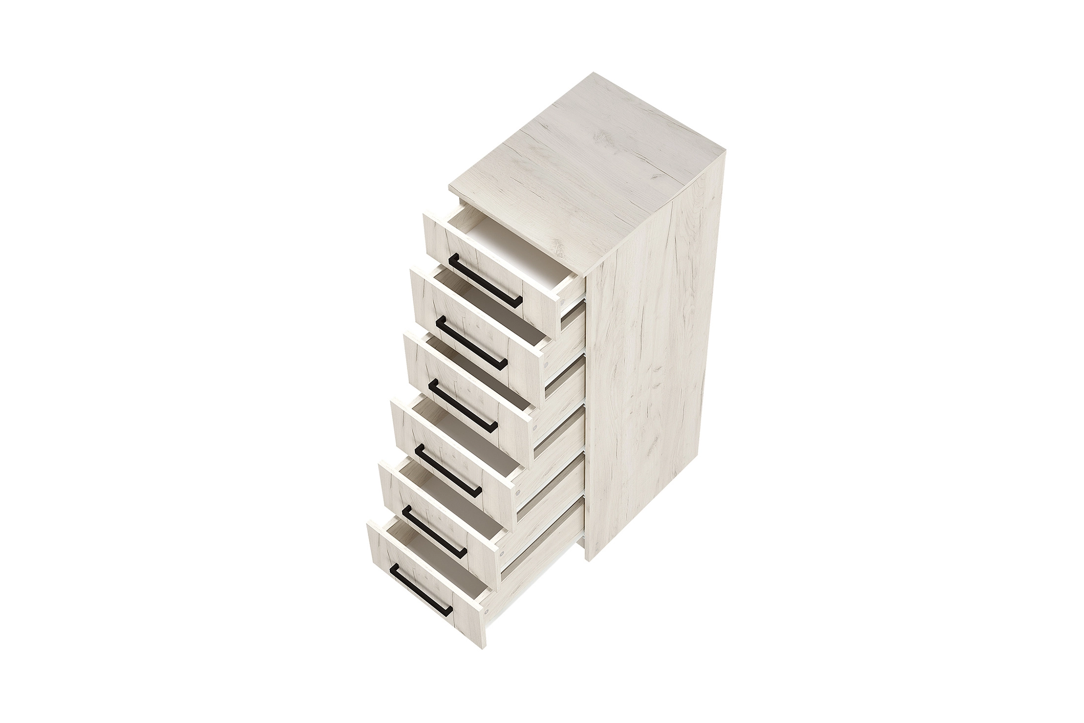 | Дополнительно | Высота верхнего ящика комода меньше высоты остальных пяти ящиков., Высота фасада ящика: 19 м., Полезная высота ящика: 14 см., Высота фасада верхнего ящика: 13.5 см., Полезная высота верхнего ящика: 8.5 см., Длина ручки: 19.2 см. |