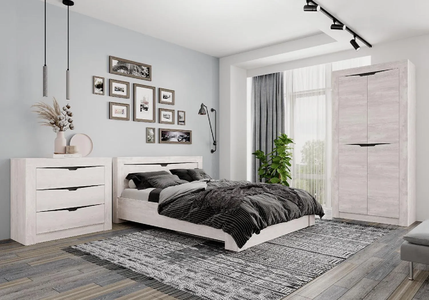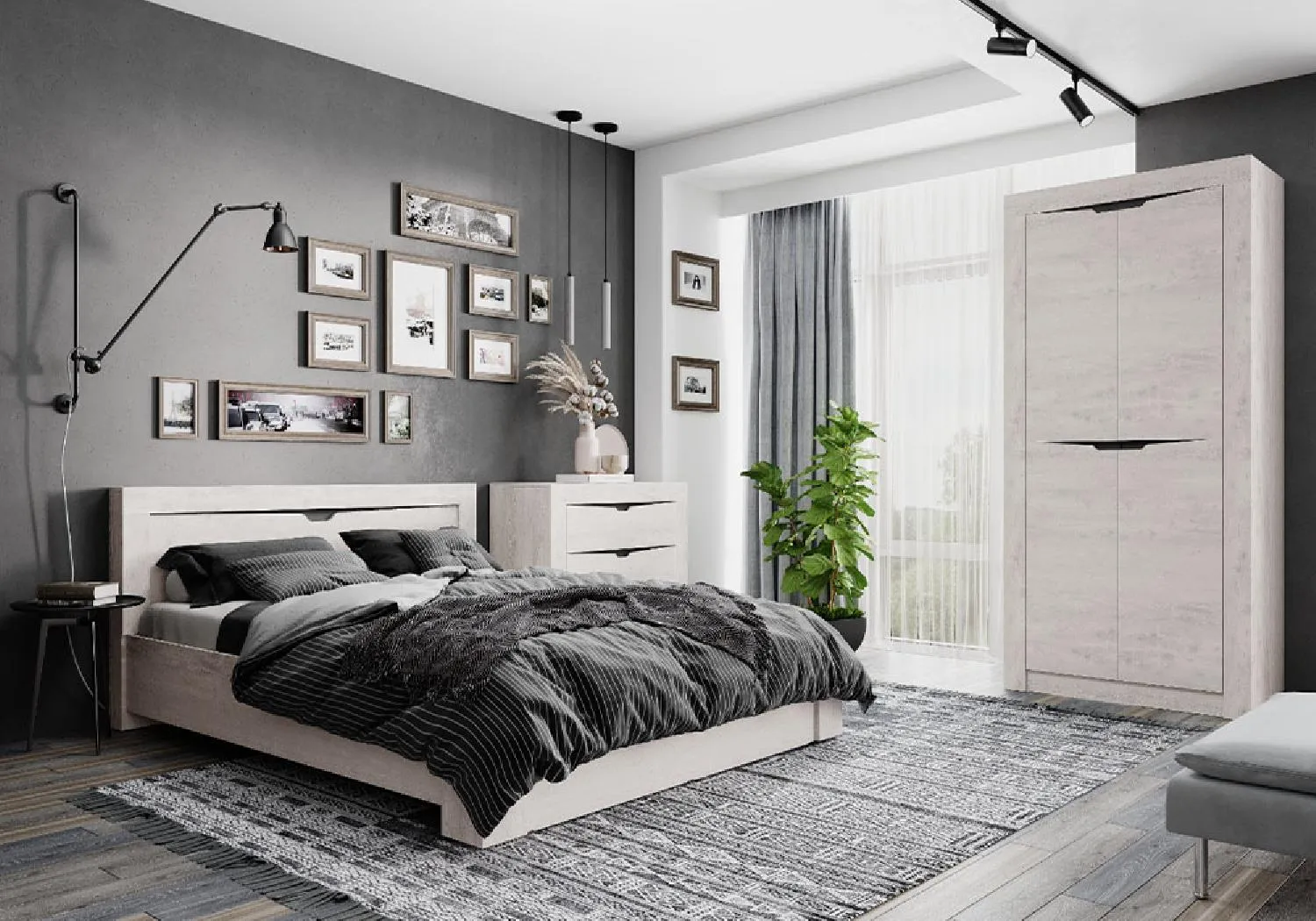 Спальный гарнитур Леонардо 2 бетон пайн светлый / графит