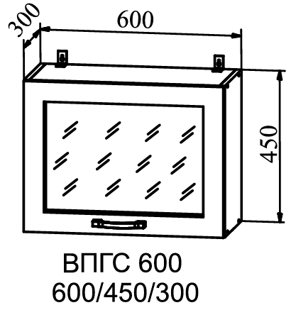 Шкаф верхний горизонтальный со стеклом высокий 600 - навесной модуль шириной 60 см.