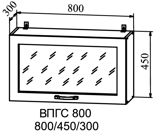 Шкаф верхний горизонтальный со стеклом высокий 800 - навесной модуль шириной 80 см.