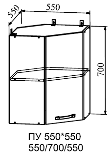 Шкаф верхний угловой 550*550 - вместительный модуль, предназначенный для формирования угловой композиции из верхних шкафов.