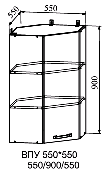 Шкаф верхний угловой высокий 550*550 - вместительный модуль, предназначенный для формирования угловой композиции из верхних шкафов.